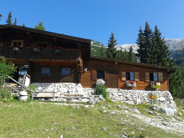 Die Pleisenhütte wurde 1953 von Toni Gaugg (Pleis´n Toni) unter Mithilfe von Freunden auf einer Seehöhe von 1757m errichtet. Ziel war es einen Stützpunkt zum Höhlenforschen zu haben. Im Gebiet der Pleisenspitze wurden 15 Höhlen erforscht. In der Vorderkarhöhle, welche unweit der Hütte auf 1848m liegt, fand der Pleisn Toni 1951 das vollständig erhaltene Skelett eines Elchkalbs, mit dem durch Untersuchungen festgestellten Alter von 2000 Jahren. Dieser Fund gilt in Tirol als einzigartig und daher besonders wertvoll. Das Skelett ist im Infozentrum in Scharnitz ausgestellt.